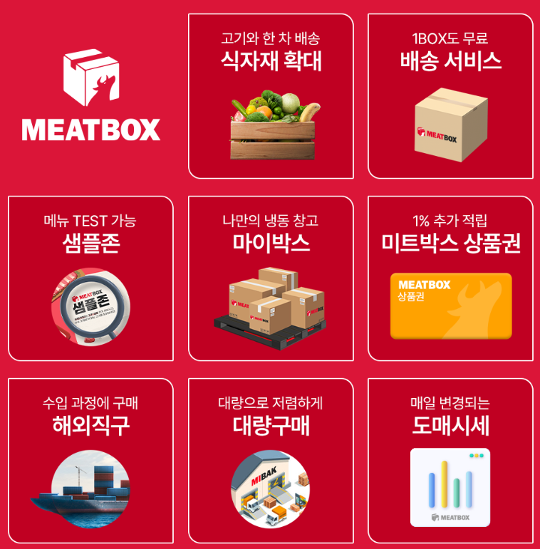 - 가입 즉시: 고기 20,000원 / 식자재 3,000원 / 샘플 2,000원 쿠폰 + 포인트 1,000P